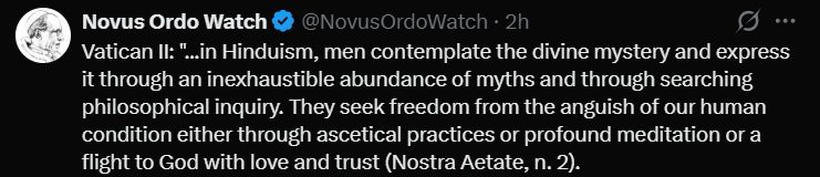 ‘Novus Ordo watch’ (a Sedevacantist account) posted the below image on their X feed with the caption: